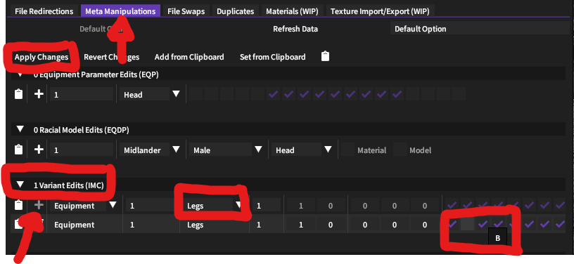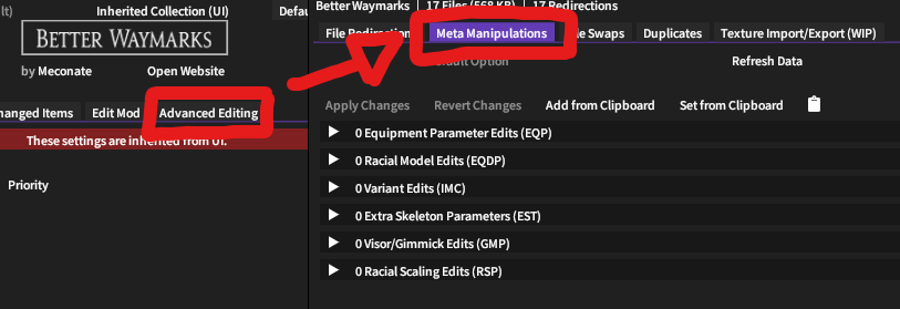 Meta Manipulationtab you can edit the meta data for the mod.It’s broken into the different sections of meta data in TexTools, and you can click the