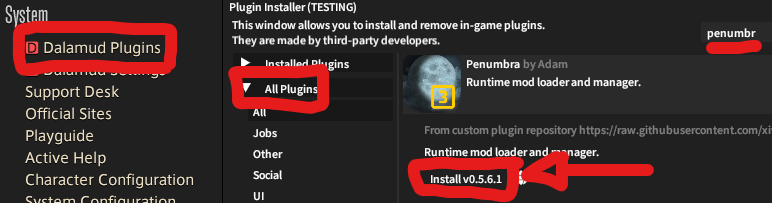 Open Dalamud Plugins Installer, and navigate to All Plugins.