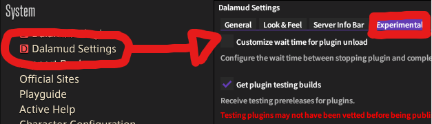Open Dalamud settings in FFXIV and head to the Experimental tab.